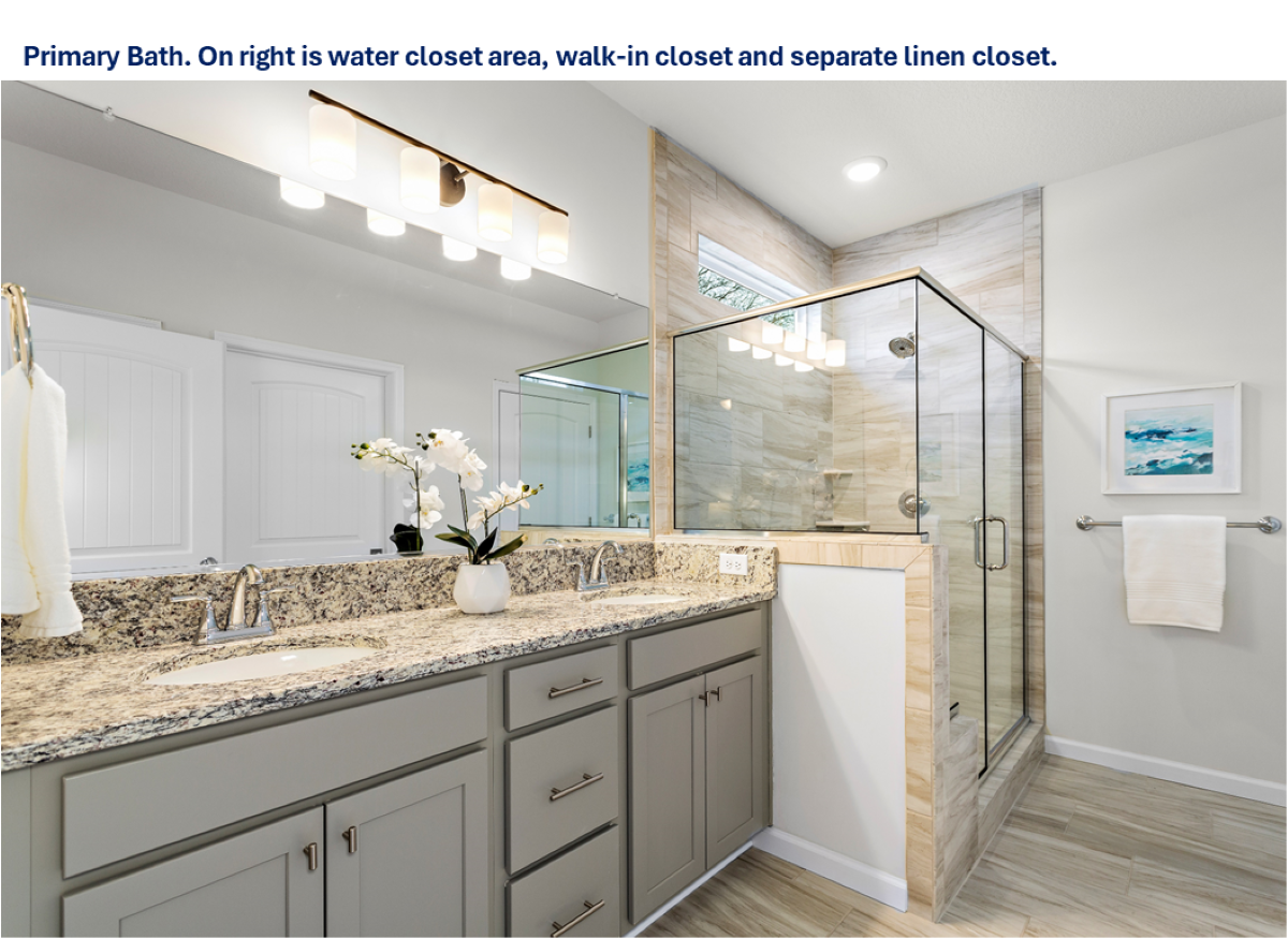 - 1st Floor Primary Suite with Custom Tile Shower and Granite topped dual vanity