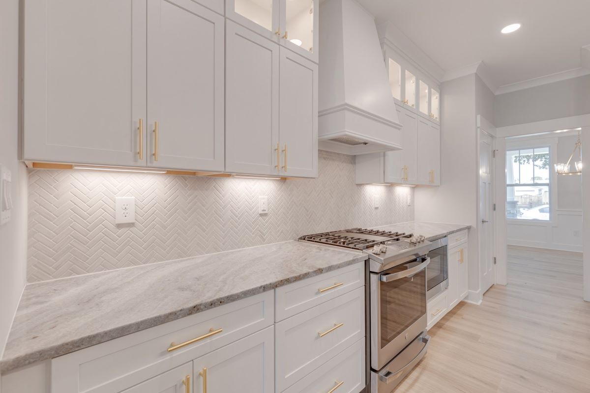 - Gourmet kitchen with gas range; custom range hood & farm sink