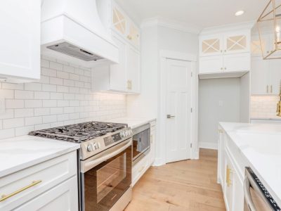 - Gourmet kitchen with gas range; custom range hood & farm sink